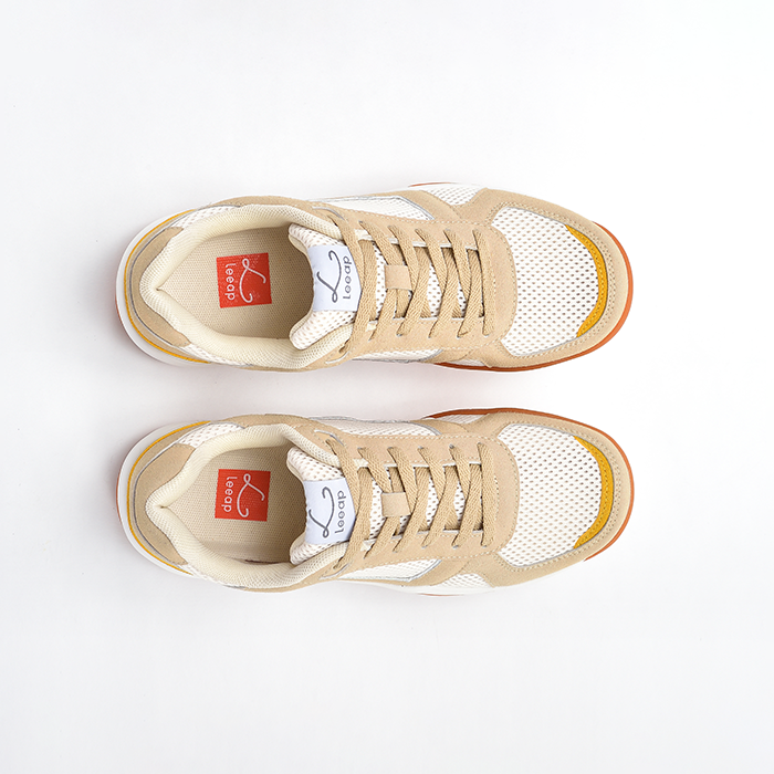 グリップ力に優れた飴色アウトソールは屋内での運動に最適です。