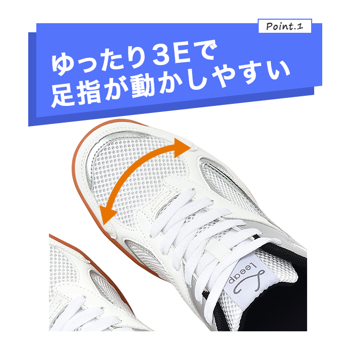 ゆったり幅広設計なので靴の中で足指をラクに動かすことができます。