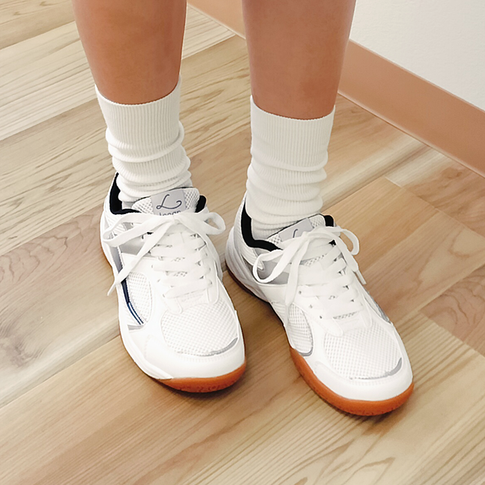 グリップ力に優れた飴色アウトソールは屋内での運動に最適です。