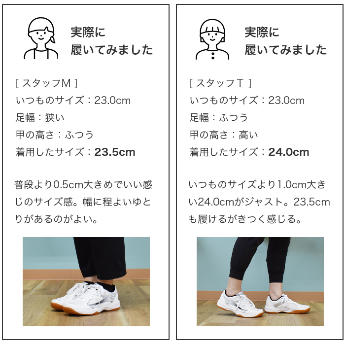 こちらの商品は、普段より0.5~1.0cm大きめのサイズをお選びいただくことをおすすめします。