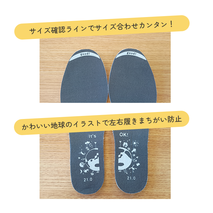 ☆左右履きまちがいを防ぐ「かわいい地球のイラスト」付き