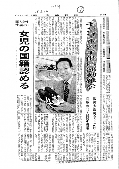 平成7年3月 平成7年1月17日に発生した阪神大震災の被災地に対して、兵庫県中学校体育連盟を通じて靴を寄贈いたしました。